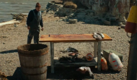 haul he returns to the shore where he guts the dead salmon, ready for the grill. But the gutted fish don’t like this situation, so they come back from the dead. Meanwhile, police chief Traylor (Michael Greyeyes, Woman Walks Ahead, Klondike (TV Mini-Series), The Reawakening) is attending a sick dog that seems to have been poisoned by rat poison in a trash heap and he has to put the dog down. He puts the dog in the boot of his car to be disposed of.