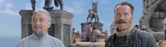 As luck would have it, the pigeon first makes its way to the tower of London, run by the imposing figure of James Hook (Arnold Schwarzenegger – Red heat, Terminator 2: Judgement Day). It ends up in a cell shared by none other than Peter the Great (Yuri Kolokolnikov – Game of Thrones, 6 Underground) and the Master white wizard (Chan).
